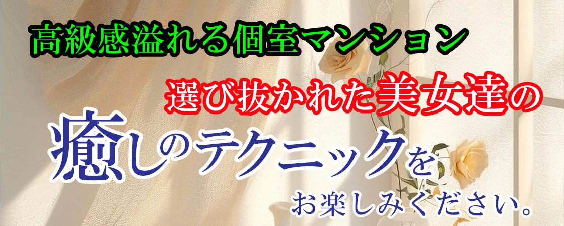 毎日頑張っている紳士の皆様、日頃の疲れになっている身体と心を、幸福なる雰囲気包まれた癒しの場所、落ちついた部屋の個室で可愛いセラピスト達がお待ちしております。当店のセラピストは若く容姿端麗にこだわりました、まるで蜜のように甘く幸せな空間でゆったりとした時間をお過ごし下さい。